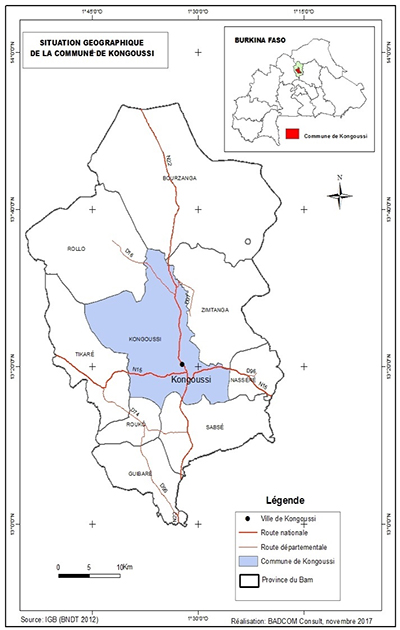 La commune urbaine de Kongoussi est située à 110 Km de Ouagadougou, capitale du Burkina Faso. Cette commune est située entre les coordonnées 1°45’60’’et 1°25’39’’ de longitude Ouest et entre